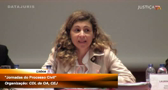 Maria Emília Santos, Presidente da Delegação Regional do Centro da Associação dos Profissionais de Serviço Social, é a última oradora a bordar o tema "O papel dos profissionais nos conflitos parentais: o psicólogo, o advogado e os assistentes sociais (formação, ética e profissionalismo)".