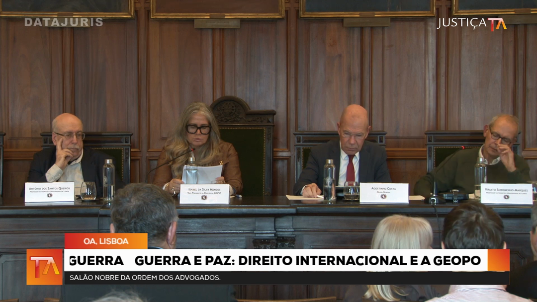 Guerra e Paz: Direito Internacional e a Geopolítica da Guerra — ADVSF Isabel da Silva Mendes 18 de Novembro de 2025 12 visualizações Abertura Partilhar no Facebook Partilhar no Twitter Mais vídeos desta categoria Viriato Soromenho Marques 40:11 Agostinho Costa 41:10 António dos Santos Queirós 30:41 Jorge Bacelar Gouveia 36:44 Debate 01:15:40 Isabel da Silva Mendes 03:00
